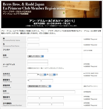ベリー・ブラザーズ&ラッドのアン・プリムールクラブ会員登録サイト。
