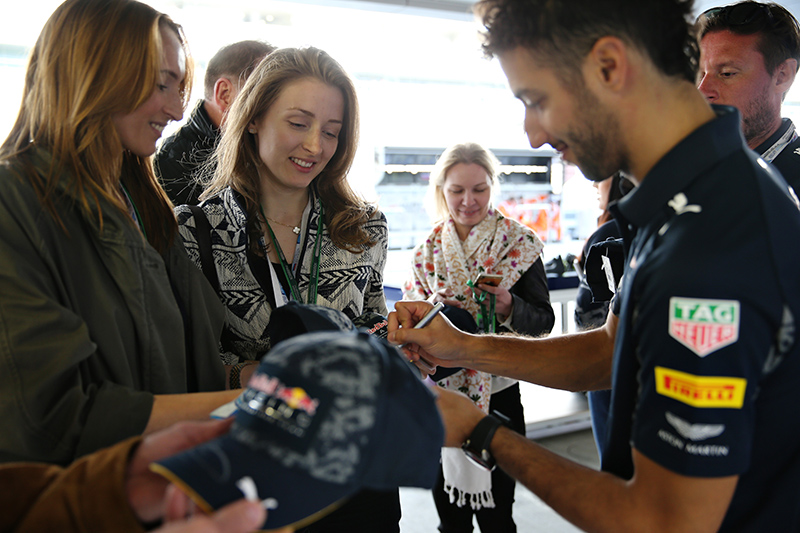 ・金曜日夜は、一般ではけして足を踏み入れられないフォーミュラワン パドッククラブ™にてRedBull racing teamとのエクスクルーシブパーティ。いま最も注目のドライバー、マックス・フェルスタッペン、ドライバーきってのナイスガイ、ダニエル・リカルド、さらにはもっともイケメンなチーム代表、クリスチャン・ホーナーと直接会える特別な一夜! ドライバーの直筆サイン入りバラクラバ(目だし帽)が当たる抽選会も開催。