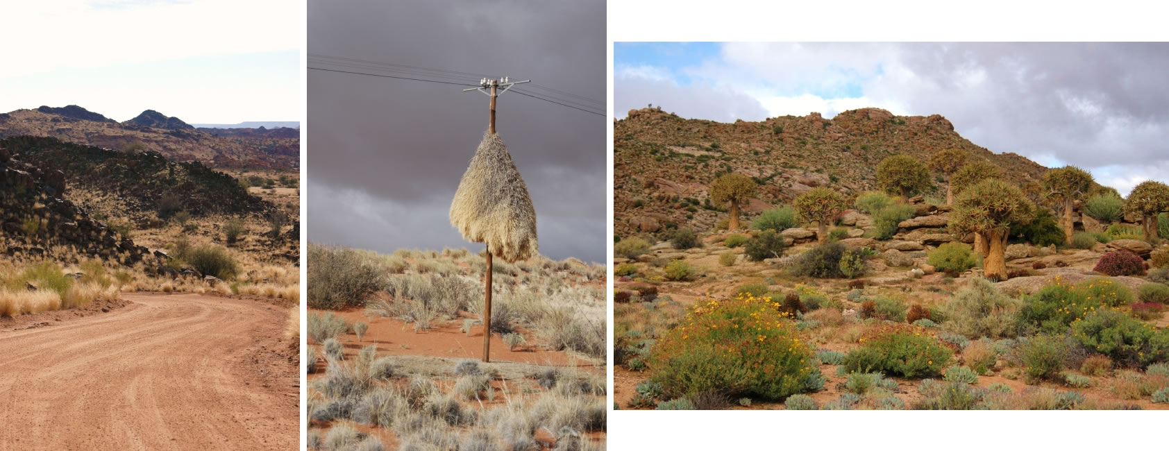 初日の宿は、オーグラビース国立公園内のコテージがお薦め。クロサイをはじめ、数多くの野生動物が生息する上、日没と早朝には、山肌に覗く何万年もの時を刻んだ地層が陽に照らされる“マジックアワー”に、息を呑むことでしょう。日照とともに活動を始める野生動物の声で朝を迎え、数日間に渡る“花追い人のバカンスが始まるのです。