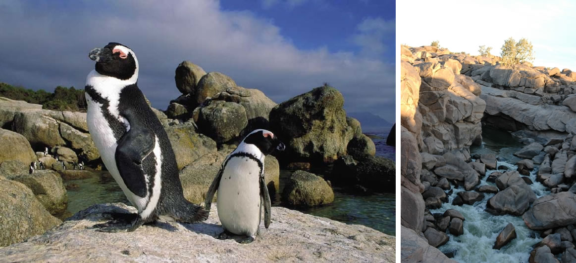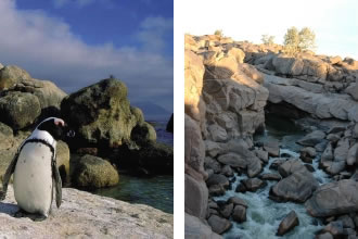 左:ランバーツ・ベイには、以前はアフリカペンギンも住んでいましたが、今はオットセイに追われボルダーズビーチへ移動したそう。
