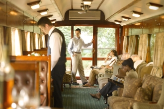 そこでご紹介するのが、もう一つの最高峰。人呼んで“走る文化遺産”「ロボス・レイル」です。いずれの車両も鉄道黄金時期1920〜30年代に製造された ビンテージカー(ビンテージがついたクラシックな車両)。もともとは、乗り物好きな南アフリカの実業家ローハン・ボス氏が、あくまで個人的に、オークショ ンで落札したビンテージカーに家族や友人を招待したことに始まります。古き良き時代の映画そのままの、豪奢な鉄道で旅をしながらサファリ(ゲームドライ ブ)やゴルフを楽しむボス氏の評判が評判を呼び、ついに1989年から一般のゲストを迎え入れて運行が開始されたのです。