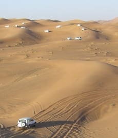 左写真:大会終了後は、現地ならではのバカンスをどうぞ。これは砂漠でのジープサファリ。数ヘクタールに及ぶ砂漠地帯を4駆で走り抜けます。