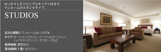 ゆえに、キッチンや洗濯機(スイートのみ)が完備された分譲型・居住型のレジデンスタイプが中心。一方で、旧来のリゾート不動産とは違い、ハウスキーピングサービスが常時利用可能なのもうれしいところです。