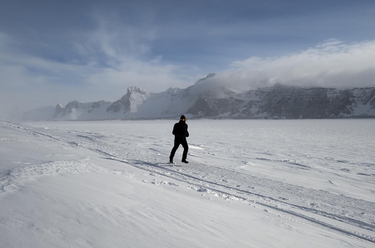 地平線まで雪原が続く南緯80度地点。南極大陸は天候が変わりやすく、激しい突風や雪嵐に見舞われることもあるため、マラソンのスタート日を延期して現地のホテルで“天気待ち”を余儀なくされることも。この予期せぬ悪天候との駆け引きもまた、南極マラソンならではの醍醐味だ。