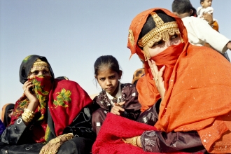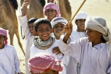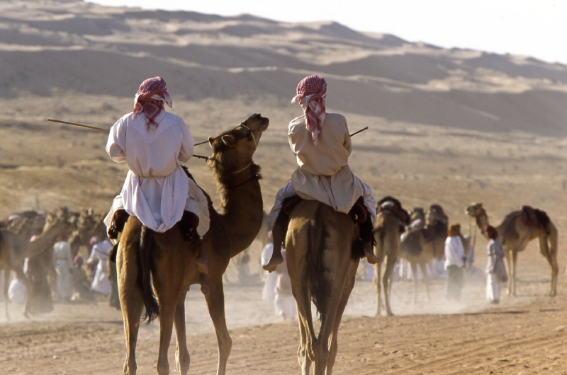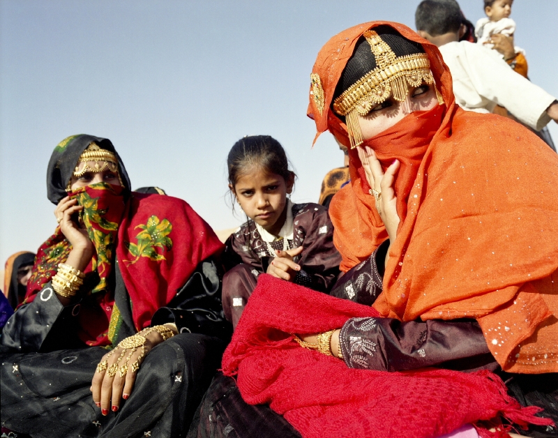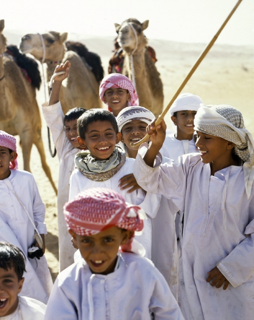 近くでは、ラクダレースが行われていた。ベドウィンたちが自慢のラクダを持ち寄り、その乗りこなしのうまさを競う。子供から大人まで、大勢の人が集まっている。女性たちはきらびやかな衣装に身をつつみ、別の場所で固まって見物している。公の場では男女は同席しないのがイスラムの慣わしだ。それにしても賑やかに盛り上がっていて、ちょっとしたお祭りといった雰囲気だ。