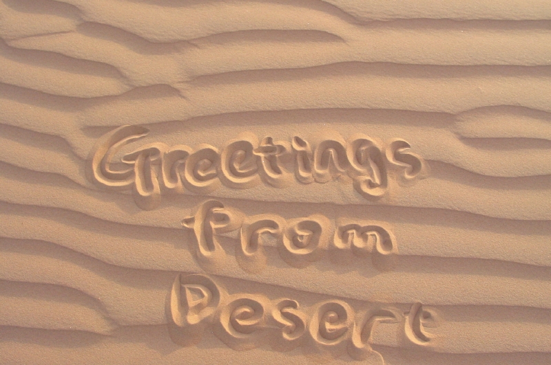 砂上に書いたメッセージを撮って友人にメール。これはかなりウケた(Photo:Hiroko Yoshizawa)