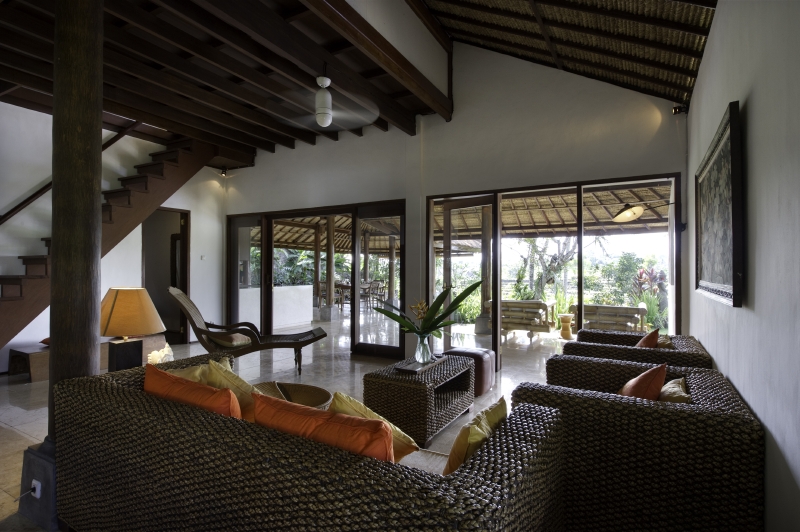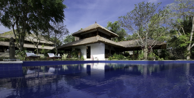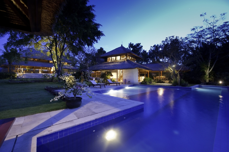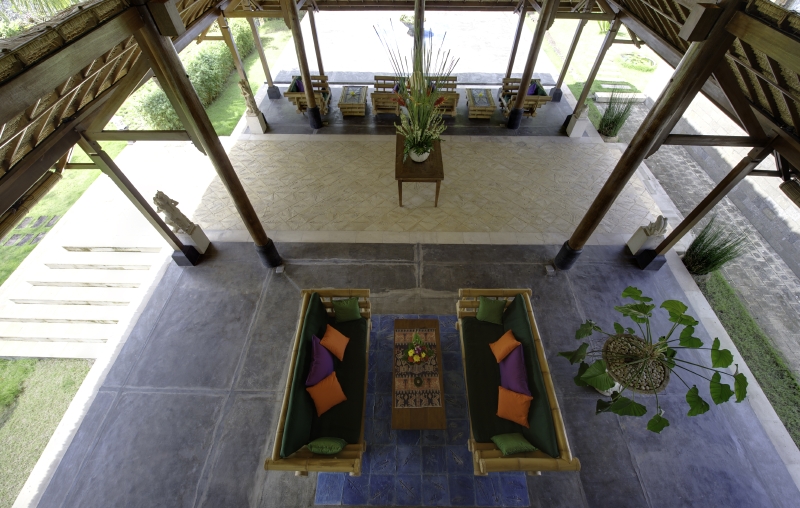 総面積約700坪の敷地内には、中庭、インフィニティプール、バレ(東屋)などがあり、それらを囲うように建物が2棟建っています。大自然の優しい風がオープンテラスを通り抜け、庭先には植物や樹々など色彩も豊かに広がる贅沢なロケーション。