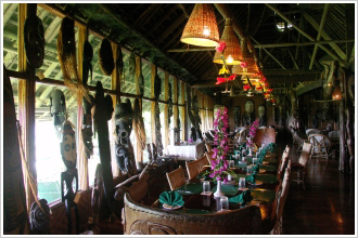 カラワリロッジセピック川の支流であるカラワリ川に面して建つ。テラスから見る熱帯雨林の絶景は忘れられない思い出に。気候は高温多湿で蚊が多い。20室。 [詳細はコチラ]