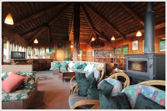 アンブアロッジ 眺めのいい丘陵地に、現地の住居をモチーフにした丸いコテージが並ぶ。高原気候で快適だが、朝晩は冷え込む。レストラン兼ラウンジの暖炉の火が心地よい。30室。[詳細はコチラ]