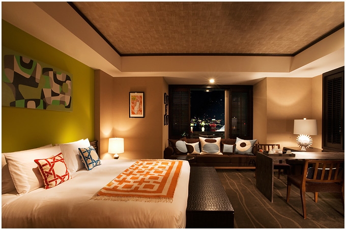 オリエンタルホテルには、さまざまゲストルームが用意されていますが、なかでもファウスト諸氏におススメなのは一階部分に店を構える「バーニーズ ニューヨーク」が日本で初めて空間プロデュースした、「マディソンルーム」と「チェルシールーム」。 いずれも部屋の内装は、ニューヨーク在住のデザイナー・ジョナサン・アドラー氏が手掛けています。ヴィヴィッドな色合いのファニチャーやインテリア雑貨も彼の手によるもので、例えば、LOVE&HATEの上質な素材を使ったクッションやベッドリネン、小物雑貨のデコレーション、さらにバーニーズ ニューヨークの広告イメージのアーカイブなども壁に飾られていて、ニューヨークのモダンな世界観を余すことなく体感できます。