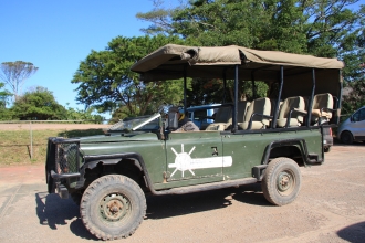 オープンカーの12人乗りランドローバーでサファリに出掛ける。国立公園はバスで移動し、窓を開けたり外に出たりすることは禁止されているが、私営はかなり自由。ただし、自己責任が求められる。