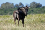 15分ほどして草原に出るとヨハンが急に車を止めた。遠くを指さすが、ブレーキによる砂煙で辺りは真っ白だ。やがてシマウマが見えてきた。「おっ」。すかさずカメラを向ける。シマウマの群れはジッとこちらを見ていたが距離があると分かると、しばらく草を食んで去っていった。十分に写真を撮ったのを見て、ヨハンはニコッと笑って再びエンジンをかける。この後も、猛々しいオグロヌー、すらりとしたブレスボック、国の動物にもなっているスプリングボックを見つける。動物が活動的になるのは早朝か夕方だから、午後3時のサファリではそんなに見られないと思っていた。でも今日はついているのかもしれない。