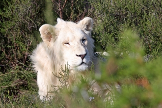 「さあ、このエリアには16頭のライオンが生息しているぞ」。アシスタントは銃を用意してから2重のゲートを開けた。少し緊張する。静かに車を進めると、やがて寝そべる3つのファミリーに出くわした。なんと、世界に300頭しかいないといわれるホワイトライオンの姿もあるではないか! 隣の黄色いライオンと比べると驚くほど真っ白だ。じっとこちらを見つめる彼らに、車は2メートル手前までゆっくりと近づき、固唾を呑みながらシャッターを切った。「すげぇ」。その迫力にケンが小声を漏らす。「移動していいかい?」とヨハンは目で合図をすると、今度は反対側に車を回してくれた。違う角度で見られるのは嬉しかったが、うんざりしたのか、「まだ居る気?」とばかりに1頭のメスライオンが立ち上がってゆっくりと向かってきた。ヨハンはすかさず黙って車をバックさせたが、ライオンは睨みながらどんどん近づいてくる。エンジンを唸らせ、バキバキっとブッシュをなぎ倒して後退する人間チーム。飛び掛らないでくれ…。心臓の鼓動が早鐘を打ちながら、ゲートまで押し出されてしまった。メスライオンは踵を返して群れに戻っていく。ホッと胸を撫で下ろすケンとは対照的にヨハンは大きな笑顔。その顔は「楽しんだかい?」とでも言っているようだった。