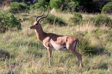 「今日だけで、チーター、ライオン、ゾウ、サイと4つも見てしまったね」。帰路に着いたランドローバーに揺られながらケンに話しかけた。「これでバッファローがいたらビッグファイブが達成だよ」とケン。夕刻のせいか、スプリングボックやスタインボックが元気に駆けていく。とそのときヨハンが急ブレーキを踏んで叫んだ。「バッファローだ!」。移動するバッファローの黒い集団が遠くのブッシュの中に消えていった。「まったく今日はすごいな。君たちは本当にラッキーだよ!」
