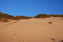 翌朝、寒さに震えながら暗い林の小道を走っていくと、崖の目の前にインド洋が開けた。ロブのいった通り、まさに陽が登ろうとしている。赤く太陽に染まる海を見つめながら、この国に来てまだ24時間も経っていないと、気づく。それなのにビッグファイブを見て、こんなに美しい夜明けを堪能しているのだ。「きれいだよなぁ」。ボツワナから来たチャールズが後ろにいた。海がない国から来た彼の感動と興奮が伝わってくる。「ビーチにみんながいるよ。行こうぜ!」 私たちは一気に真っ白い砂丘を駆け下りた。旅はまだ始まったばかりだ。これからどんな冒険が待っているのだろう。そこにいる皆が、子供のようにワクワクしていた。