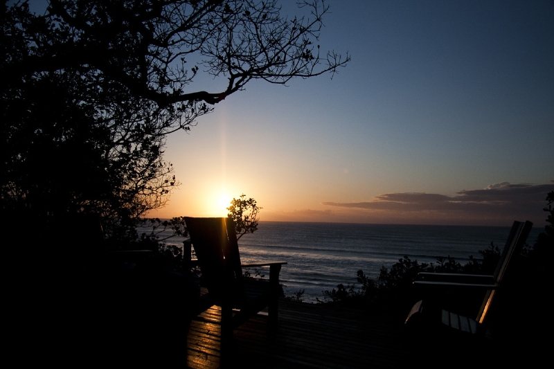 今夜の宿は、インクウェンクウェイズィからイーストロンドンコーストという自然保護区の海岸沿いに北上した「プラナロッジ(Prana Lodge)」。5ツ星のコテージである。うっそうと茂る木々の中に、宝石の名前をつけたスイートが7つだけ点在し、部屋の前の小道は、バーラウンジやダイニング、プール、そしてプライベートビーチへと続く。今夜は貸し切りだ。「さあ、そろそろ中でお食事を」。オーナー夫妻に促され、暖炉の火がともったダイニングですばらしいディナーに舌鼓を打った。「日本からは何時間かかった?」「中国語で乾杯は何っていうの?」「今日はコーサ族の踊りを見たんだよ」。初対面でも、ケープタウンのおいしいワインのおかげで会話がはずむ。23時。現地コーディネーターのロブが「明日は6時に海から陽が昇るぞ」と告げてディナーは終わった。