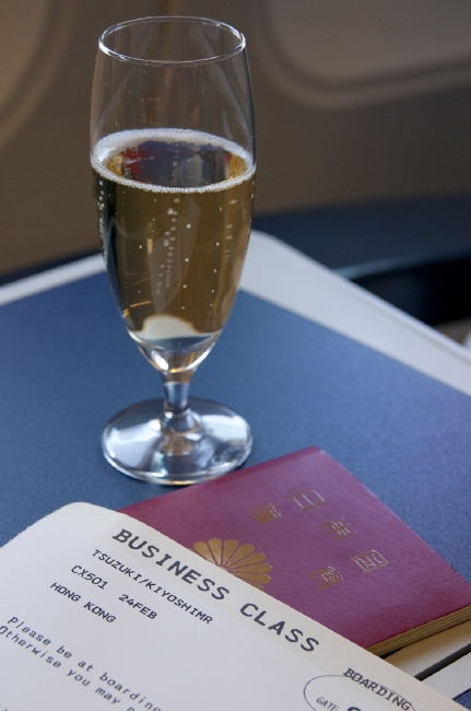 香港へは5時間ほどのフライト。ゆったりしたシートでは、PCを開いて残った仕事を片付けるもよし、香港での仕事の準備に費やすもよし。機内食では新鮮な魚介など素材の生きた料理に舌鼓を打ちつつなど過ごしていれば、ほどなく香港へ到着する。