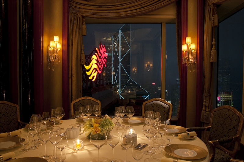 香港・マカオ版のミシュランスターを2009から毎年獲得している高級フランス料理レストラン。ワインは米国「ワインスペクテイター」誌のエクセレント賞を2000~11年獲得した屈指のラインナップ。伝統的なヨーロピアン調のデコレーション、印象派の油絵、彫刻やクリスタル製シャンデリアが飾られたダイニングルームは、眼下にヴィクトリア湾を望む。