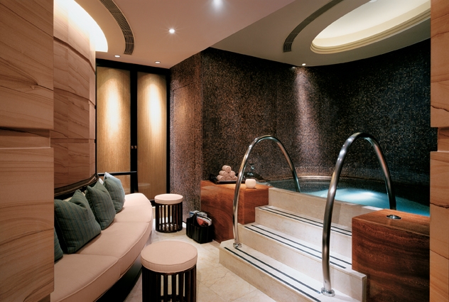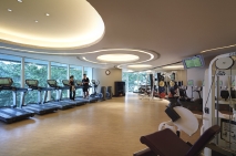 ジムは24時間営業。ボディビルディングやランマシーン、バイクなどの機器や備品を完備。パーソナルトレーニングも可能。ガーデンプール(右)は6~22時営業。幅11m、最長28m、深さ1~2m。レジャー用レーンとトレーニング用レーンを用意。マッサージ&ビューティートリートメントは7~25時営業。ボディラップ、フェイシャル、スウェーデン式マッサージ、ホットストーン、アロママッサージや中国式指圧など各種用意。