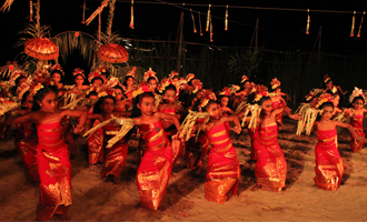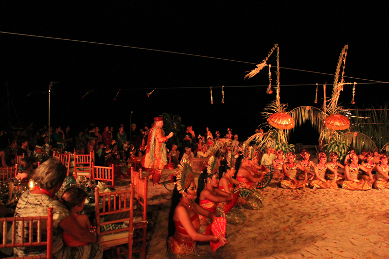 いま私たちが心地よいと思う、バリの、あるいはアジアのリゾートの原型は、すべてタンジュンサリとウィヤ・ワォルントゥをめぐる仲間たちの中から生まれたのだ。パーティーは、タンジュンサリの歴史を綴った本『tandjung sari A Magical Door to Bali』の出版記念を兼ねていた。少しつたない司会進行は、美女揃いの孫娘たち。彼女たちの美貌に、ハンサムでプレイボーイだったウィヤの生前を重ね合わせる。ディナーの後は、50人の少女ダンサーがビーチを埋め尽くす、ありえない規模のバリダンス。文化の継承に長年尽力してきたタンジュンサリならではのパフォーマンスだ。夜がとっぷり更ける頃、いつもは静かなプールサイドのライブラリーが一夜限りのダンスフロアになった。76年から77年のヒットナンバー、アバのダンシングクイーンが流れると、タティエ・ワォルントゥが、ウィヤにエスコートされるかのようにステップを踏みながら登場した。すると、会場はひときわの盛り上がりを見せたのだった。