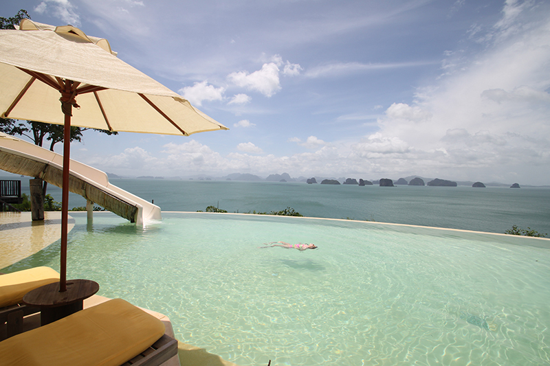 海に溶け込むようなインフニティプールに仰向けになって浮かぶ。大きな空を雲が流れてゆく。水平線に浮かぶクラビの島影。それは、なんとも美しい楽園の風景だった。