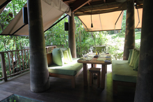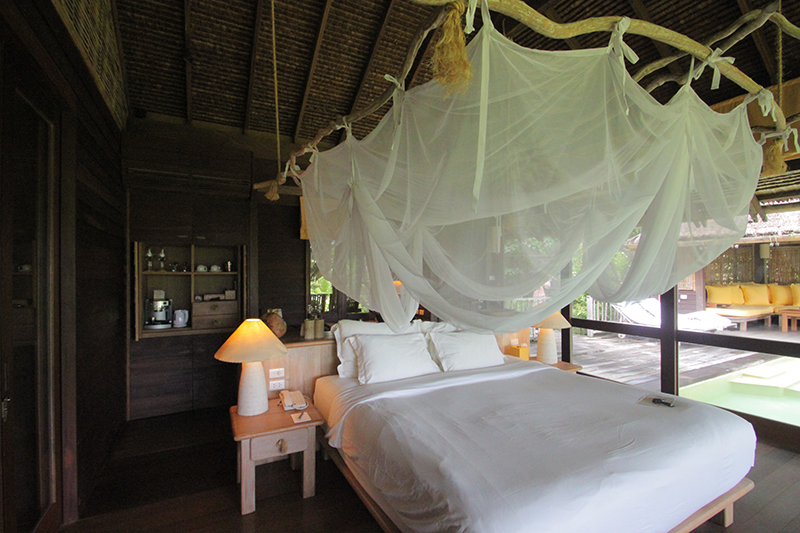リゾートの建物は、竹などの自然素材が用いられていて素朴な雰囲気。写真に撮ると地味にも見えるが、これ見よがしな主張より、そこで過ごすゲストの居心地の良さを目的にしているからなのだろう。緑の中にしっくりと溶け込んでいる。私が滞在したのは、最もスタンダードなハイダウェイ・プール・ヴィラだったが、充分にゆったりしたレイアウトの快適な空間だった。