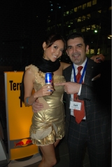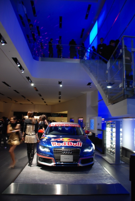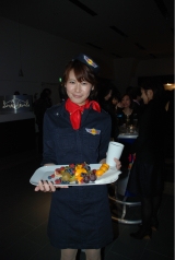 12月4日、原宿のアウディフォーラムで、レッドブルの2008サンクスパーティが開かれました。テーマは「ナイト・フライト」。ゲストにはボーディング パスを模したインビテーションが送られ、エントランスでチェックイン! キャビンアテンダントのコスチュームを着た愛らしいスタッフが出迎え、笑顔ととも にフィンガーフードをパスサービスしてくれました。レッドブルをベースにしたカクテルも一層おいしくなろうというものです。ドリンクカウンターや、2階の ラウンジスペースなど各ブースには、「ターミナルナンバー」がふられ、空港がクラブラウンジ化したようなスタイリッシュな空間演出は、さすがレッドブルと いうところ。DJの操るHIPなラウンジミュージックのなか、ゲストたちは思い思いに楽しみました。