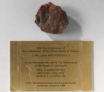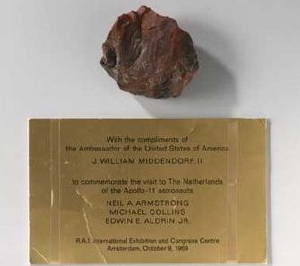 オランダのアムステルダム国立美術館に収蔵されている「月の石」が、実は単なる木の化石であることが判明した。この石は、1969年10月、当時の駐オランダ米大使のJ.ウイリアム・ミッデンドーフ氏(現在85歳)からウィレム・ドレース元オランダ首相に個人的に贈られたもので、元首相の死後はアムステルダム国立美術館の所蔵品となった。石はマッチ箱ほどの大きさで、「アポロ11号の宇宙飛行士らのオランダ訪問を記念し米国大使より謹呈」といった文言が記されたプレートも付いている。