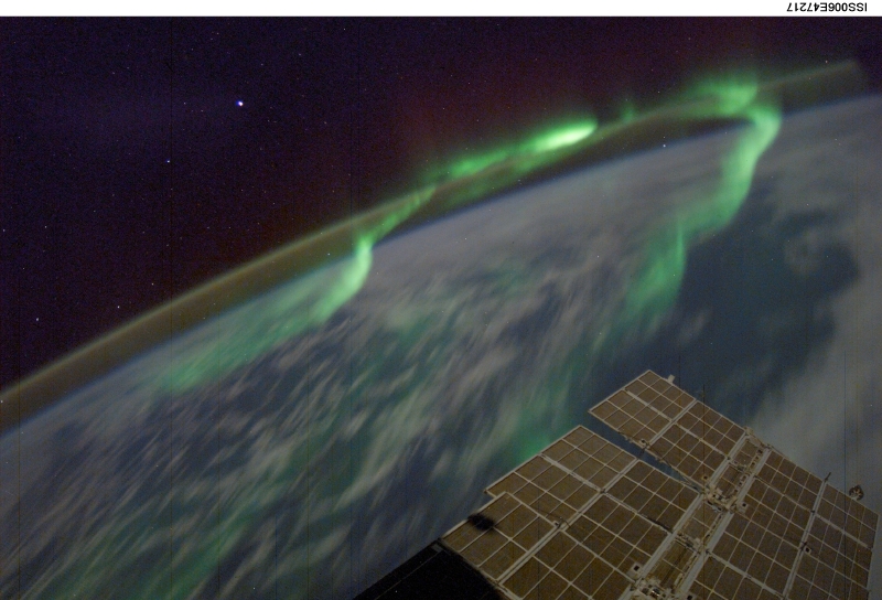 この企画展、単にオーロラの写真を集めただけではない。その名の通り、“宇宙から見た”オーロラの映像や写真を見ることができるのだ。これは、NASAやJAXAの協力により、ISS(国際宇宙ステーション)や人工衛星から撮影された大変貴重なもの。オーロラが、宇宙からこんなにはっきりと観測できるという事実に、まずは驚かされる。そしてその幻想的な姿たるや、思わずため息が出るほどだ。