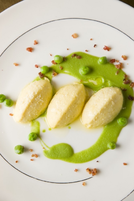 その典型的な例が、今回のディナーコース2品目に供される仔牛の胸腺肉を使った『茄子と胸腺のタルト仕立てとフォッサチーズ』。胸腺肉は日本で食材となることの多くない珍しい部位で、適度な歯ごたえとミルキーな味わいが特徴だ。また、3品目の“ニュディ(ヌード)”と呼ばれるラビオリも非常にシンプルで、 通常ラビオリと聞くとパスタに包まれたものをイメージするが、この“ニュディ”は、裸を意味するその名の通り、リコッタチーズとほうれん草に小麦粉をまぶしたものつまり私達のイメージするラビオリの中身だけを エンドウ豆のソースをからめていただく珍しいパスタ料理である。このように、トスカーナの食にまつわる歴史的背景を意識しながらのディナーは、このイベント最大の醍醐味といえるだろう。