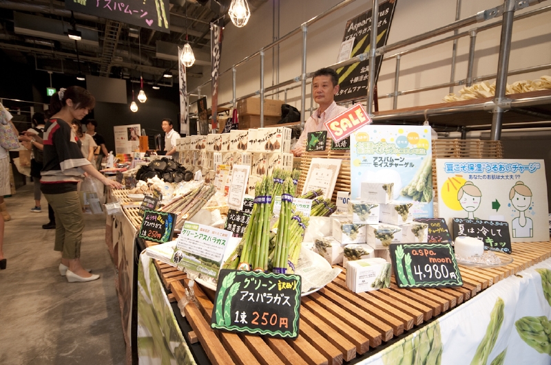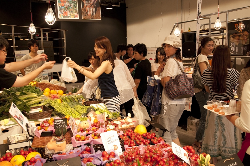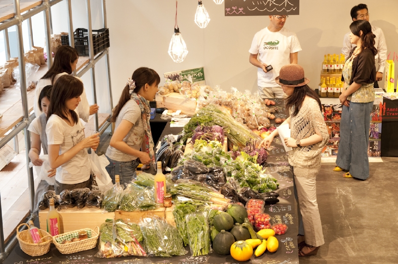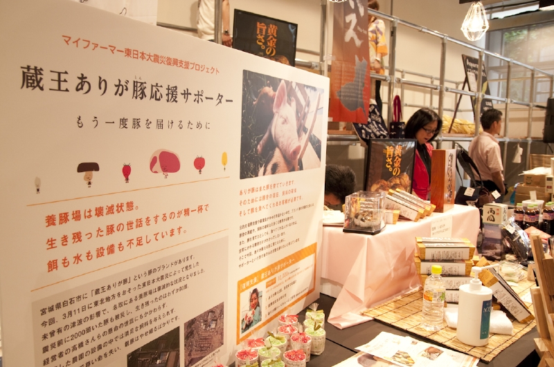 野菜のほか、茨城県からは笠間焼、地元・代官山の山田平安堂、宮城・気仙沼の帆前掛けエコバッグと仙台味噌・醤油、サイバードグループの「マイファーマー」は「蔵王ありが豚サポートプログラム」の公募なども出店。