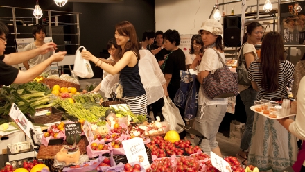 7月2日(土)、3日(日)の2日間、代官山にて、「マルシェ・ド・マンサード・ア・代官山」が開催された。「おいしい野菜市、はじめました」と謳い、会場となった「シアターサイバード」に各地の生産者が集結。千葉県香取市からは「和郷園」、茨城県石岡市からは「カルティベイト」、北海道十勝からは「フルタイムファーム」。朝取れトウモロコシ、桃太郎はじめ大小さまざまなトマト類、9種(!)のじゃがいもやおかひじき、スイスチャーブ、コールラビといった珍しい洋野菜などなど……生命力あふれる色とりどりの安全でおいしい自慢の野菜がずらり並んだ。