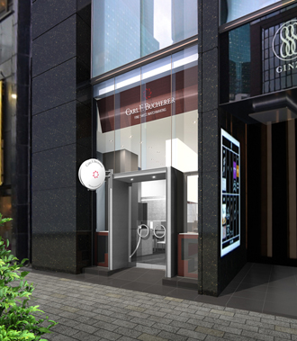 そして、このたび2011年10月15日、世界で8番目となるブティック、「カール F. ブヘラ ブティック銀座」がオープンする。2フロアのスペースは「Behind Complexity, There Is Big Simplicity」、すなわち「複雑なものには、大いなるシンプルが存在する」というコンセプト。例えば、自然石の重厚感、木目の落ち着き、そして明 るい白の組み合せなど、随所に異なる素材を使いながら、シンプルなデザインで統一された居心地のよい空間に設えている。