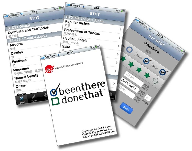今回のその手帳のデジタル版、BTDTグローバルのiPhoneアプリ版が完成。お披露目となるイベントが、先日、BTDTの発行元(株式会社LA DITTA 本社:東京)のオフィスがあるシンガーポールの「Feel JAPAN CAFE&SHOP(山水レストラン内)」で行われた。このカフェはBTDTその発行元が運営する、オープンしたての日本のアンテナショップ。観光客が急減している日本、とくに深刻な被害の出ている東北地方を応援しようという主旨のもと、シンガポールの観光局及び、さまざまな企業が協力した。