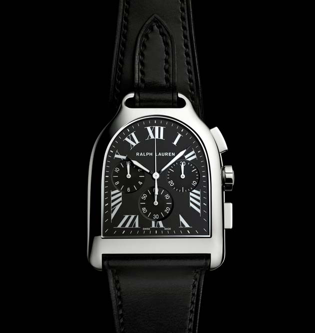 数多あるファッションブランドの腕時計のなかでも、ラルフローレンが他社のそれと、一線を画すのは、超一流の機械式ムーブメントをベースにしている点と、ラルフローレン自身が所有する膨大なヴィンテージコレクションからデザインをインスパイアされている点。例えば時計ケースを、鐙(あぶみ)のフォルムで表現したり、レザーストラップの形状は馬具のディテールから着想を得たりと、随所に独創的なデザインを採用している。