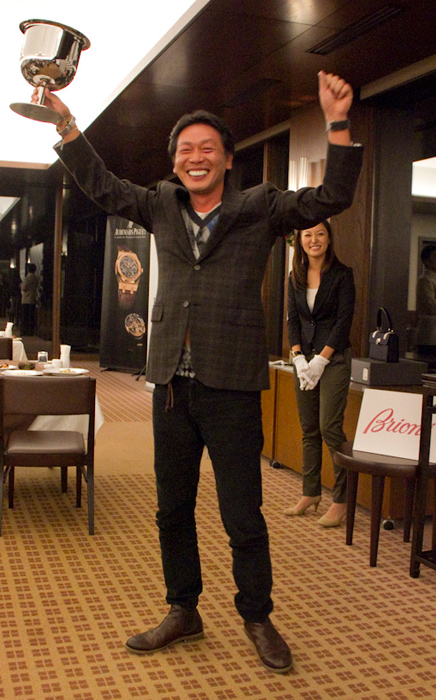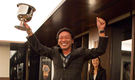 今年4戦に渡って繰り広げられてきた年間シリーズ戦を制し、初代年間総合王者の栄冠を獲得したのは、ゴルフチームの井上盛夫さん! 副賞に「オーデマ ピゲ ロイヤル オーク」と「ブリオーニ ウィナーズジャケット」が贈られました。