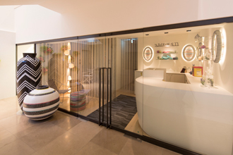 サロンのデザインディレクションは国内外で活躍するグラマラスの森田恭通が手掛け、ミッソーニのエレガントなファッション性を生かした癒しの空間が広がる。プロデュースはソルト・コンソーシアム。