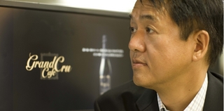 川島良彰。昨年スタートした「Grand Cru Caféグラン クリュ カフェ」の生みの親。ワインの世界に倣い、優れた農園から特に環境の良い畑を選定し、特別な条件の元にのみ育成、収穫、精選されたコーヒーを使用して、極上の特級豆を作り出す。日本で通常話題になるのは焙煎のことばかりだが、コーヒーの木の育成から始まって加工にも運搬にも保存にも「一切の妥協を排した理想のコーヒー」を実現できるのは、コーヒー一筋に生きてきた川島を除いて他にはいないだろう。