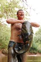 なんと彼らは全く漁具を使わず、自らの体ひとつで対決した末に巨大ナマズを捕まえます。茶色く濁った川や沼に潜って底にある大ナマズの巣穴に手を突っ込み、それをエサと勘違いしたナマズに食いつかせて、力に任せて捕まえるというのが、アメリカ南部に伝わる原始的な漁法「ヌードリング」なのです。