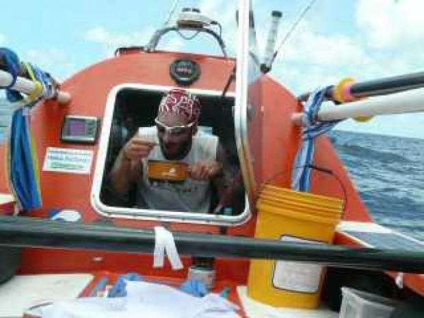 そんな彼の精神を支えたのは、パソコンで愛妻や友人とやりとりするメールとiPodで聴く音楽だったとか。また、ゴールまで陸を見ることはないと思ってい た彼は、出発から61日目にポリネシア諸島の島影を発見。歓喜する彼は妻や友人たちへ伝えて喜びを分かち合ったと言います。マルケサス諸島を通過する頃 は、天候も穏やかで、昼は魚釣りを、夜は満天の星空を楽しむ余裕も出て、9月の誕生日はトンガの海域で迎えました。