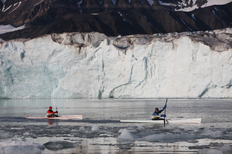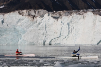 北極点近辺は、年の平均気温がマイナス6.2度、最低気温はマイナス42.2度。確かに8月~9月は平均0~3度と比較的暖かい(!?)そうなのですが、 水温はマイナス1.5度~1.8度と、やはり冷たい。そんな過酷な条件のもと、屋根も囲いもエンジンも一切なしの吹きっさらしのカヤックで、1200㎞に 及びバレンツ海と北極海を横断するというのですから、通常ならば、“成功”を目標とするはずなのに……と皆様も疑問に思われることでしょう。