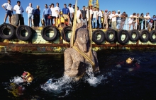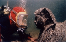 そんな中、去る3月10日、その第一人者として活躍するフランス人海洋考古学者フランク・ゴディオ氏が来日しました。来日理由は、なんと海底に沈んだ古代 エジプト・プトレマイオス朝を中心とした貴重な海底遺跡の引き上げに成功し、それらを日本で公開するため! その遺跡の数々は、「海のエジプト展〜海底か らよみがえる、古代都市アレクサンドリアの至宝〜」と称して、2009年6月から横浜で一般公開されるのです。