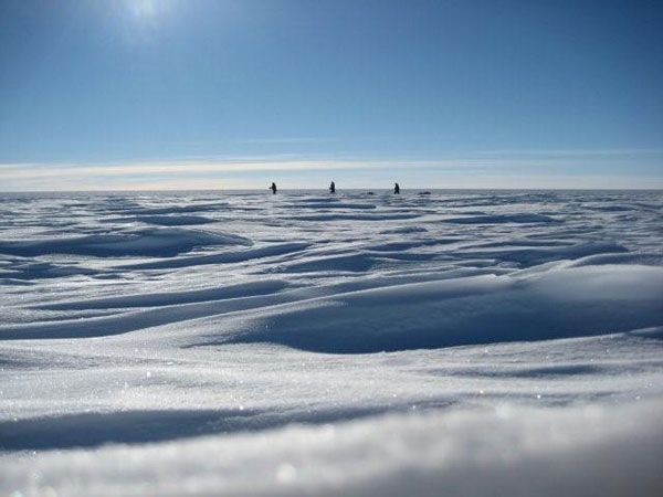 レーススタートの合図が南極の空に鳴り響いたのは、2009年1月4日。気温マイナス20℃、凍てつく晴天のなかを、スキーを装着した6チームが一斉に滑 り出したのです。最初にリードを奪ったのは、英国チーム「QinteiQ」。スコットの無念を晴らすべく、順調な滑り出しを披露。すぐ後に、ノルウェーの 「Missing Link」が続きます。