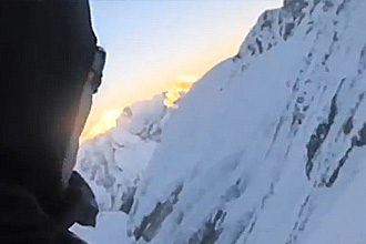「これから下山するところです。(下に)ベースキャンプとプモリモハイキャンプが見えます」。吸い込まれそうな青い空と白い雪原に、黒く焼けた栗城の笑顔が輝く。意外に元気そうな声だ。