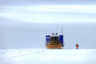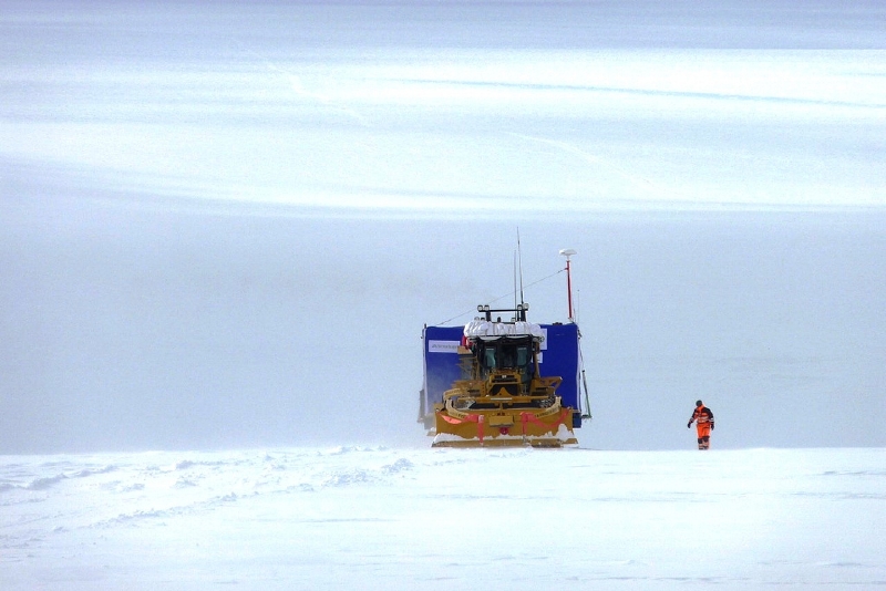 朝(といっても太陽が天高く昇って一帯を明るく照らすわけではないのだが)6時半にその日の天気の状態を確認、当日のプランを打ち合わせたのち、出発。スキーをはいた隊員が先頭に立ち、クレバス(氷河の裂け目)や地形情報を感知できるレーダーを引いて先導し、その後を”アイス・トレイン”が続く。アイス・トレインとは物資や隊員などを乗せた荷台を列車のようにつないだもので、2台のトラクターが、生活スペースとなるコンテナや、研究資材を搭載したコンテナ、食料、燃料などを牽引し、大陸を進んでいく。1日およそ8時間、平均35キロ。大きなクレバスが感知されればルート変更を余儀なくされ、悪天候に見舞われれば、じっと待機することになる。予備日なども含め、計画の通りに進めば、6月中旬には南極点に到達していることになる。その後、ニュージーランドの南方に位置する南極大陸マクマード海峡(McMurdo Sound)のスコット基地へとルートを取り、到着は9月21日頃と予定されている。南極の冬と真正面から対峙する、長い旅になるというわけだ。