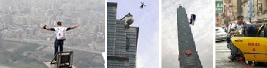 「台北101」のベースジャンプ。警備の網をかいくぐり、3メートルの柵を越えて見事ジャンプ!近くの駐車場に着地後、タクシーを拾って逃走。
