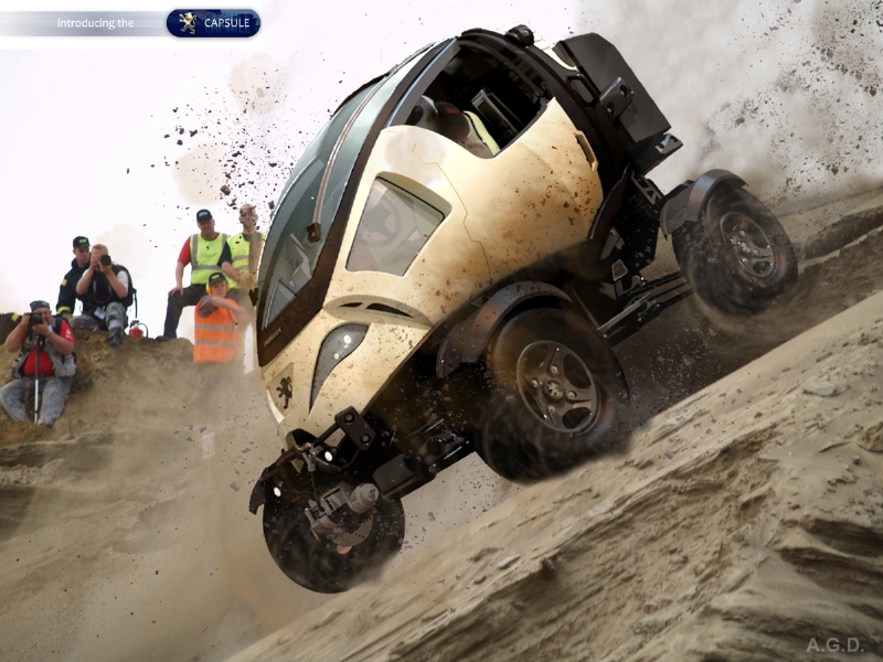 そんな、まるで自由と冒険を愛するファウストの皆様に向けたかのように、条件ぴったりのコンセプトカーが、設計・発表されました。南アフリカ・ヨハネスブ ルグのデザイナーAlp Germanerがフランス・プジョー社のためにデザインした1人乗り四輪オフロード車、その名も「プジョー・キャプシュール(Peugeot Capsule)」です。