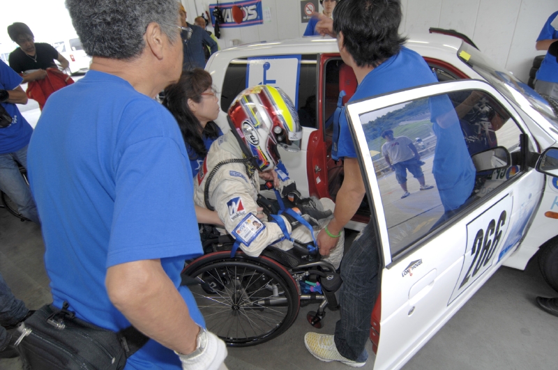 5人のドライバーで構成された長屋所属のチーム『ランフ・バンW/ピロレーシング』は、3人が車椅子のドライバーである。健常者なら1分ほどで済むドライバーの交代も、ステアリングやシートポジションを調整するために10分以上を要する。それぞれのドライバーが懸命にラップを刻んでも、順位が少しずつ後退してしまうのは避けられないことだった。