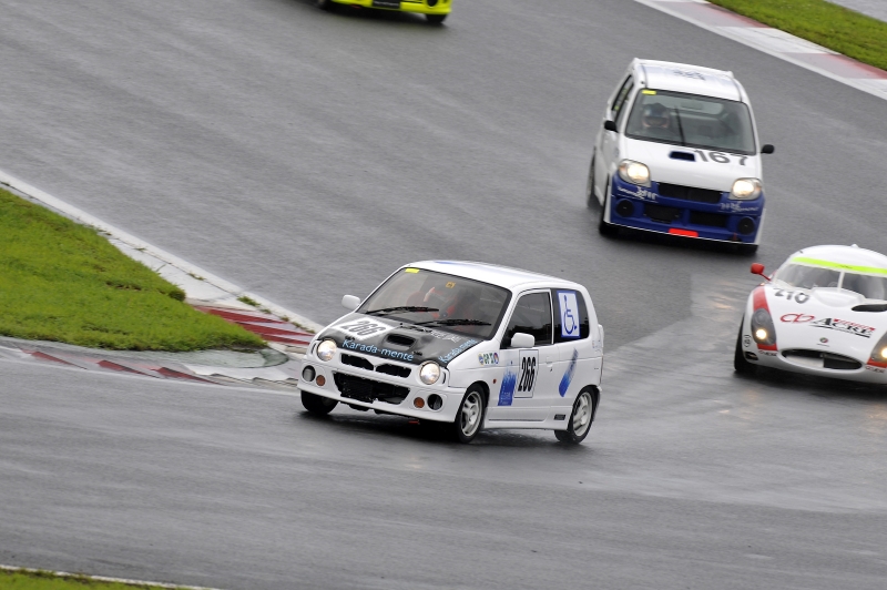 国内で毎年2回、隔年でマレーシアのセパンサーキットでも行われる軽自動車のためのレースだ。参加チームには研究目的の大学のチーム、女性だけのチーム、平均年齢の高い壮年のチームなども混在し、サーキット初走行のドライバーから往年の名ドライバーまでが集う。