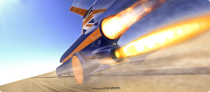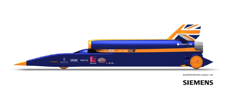 そして21世紀を迎えた今。ノーブルとグリーンは、ふたたびチームを組み、自らの記録に挑戦することになった。『ブラッドハウンド・スーパ・ソニック・カー(以下、ブラッドハウンドSSC)』と名付けられたプロジェクトは、1,000mph=時速1,609.344km、マッハ1.3越えがゴールだという。このプロジェクトは2008年10月に始動し、数年を掛けながらマシンの設計やスポンサーシップの取り付けなどを進めてきた。そしていよいよ、2013年にはアタック走行の実現が視野に入ってきたという。マシンは幾度か設計を変えながら、すでに建設が進められつつある。 単純に男のロマンを追求するだけでなく、英国に最新技術のエンジニアを育てるというエデュケイショナルな目的を掲げたこのプロジェクトには、世界的大企業や教育機関が次々にスポンサーとして名乗りを挙げつつある。